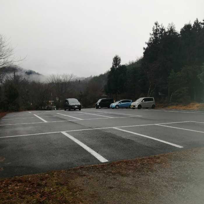 先ほどの看板を矢印の方向に進むと結構広い駐車場があります。ちなみに訪問日は1月中旬。まあ冬はこんなもんでしょうが、暑い夏の時期や永源寺にお客さんが出向く秋のシーズンはもっと多いでしょう。
