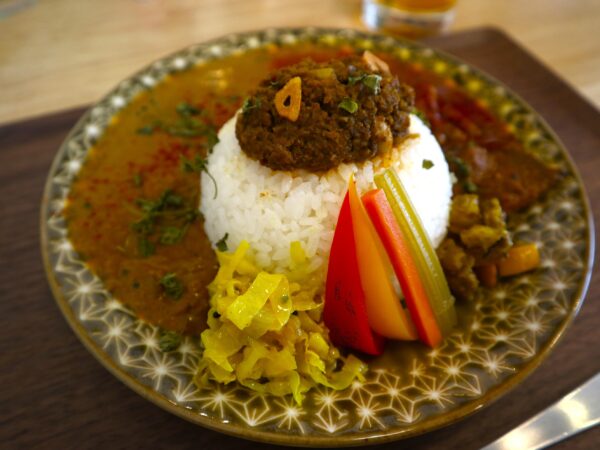 日替わりで内容が変わる楽しみと、誰にでも食べやすい優しい味わいが魅力です。スパイスの香りは豊かですが辛さは控えめで、小さなお子さまや辛いものが苦手な方でも安心して味わえます。本格的なスパイス使いながらも、家庭的な温かみがあり、一口ごとにほっとするような優しさが広がります。